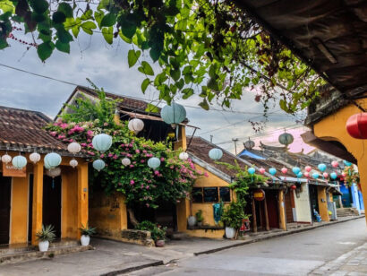 • Tiếp tục vào Hội An: nơi mà cuộc sống cứ bình lặng, nơi mà dường như dòng chảy vô tình của thời gian chẳng thể nào vùi lấp đi cái không khí cổ xưa. Những mái ngói cũ phủ đầy rêu phong, những con đường ngập trong sắc đỏ của đèn lồng, những bức hoành phi được chạm trổ tinh vi, tất cả như đưa ta về với một thế giới của vài trăm năm trước.